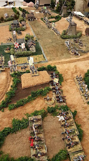 The game was played using Carnage & Glory rules http://www.carnageandgloryii.com/index.htmAs I said the battle was fought on 3 separate table with results from all entered into a single OOB at the end of games to get results.